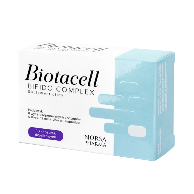 Biotacell Bifido Complex to produkt przeznaczony jako uzupełnienie codziennej diety w żywe kultury bakterii z rodzaju Bifidobacterium, szczególnie przy zwiększonym zapotrzebowaniu, np. w okresach osłabionej odporności, w trakcie i po antybiotykoterapii czy podczas zmian diety.